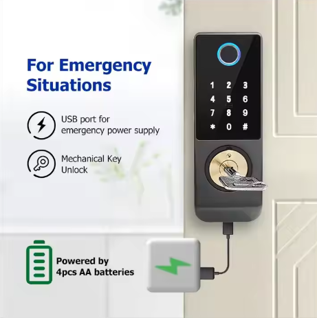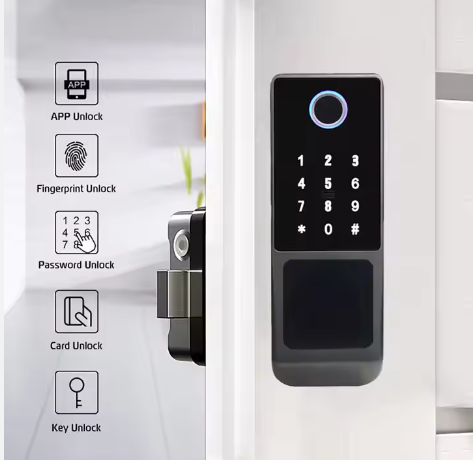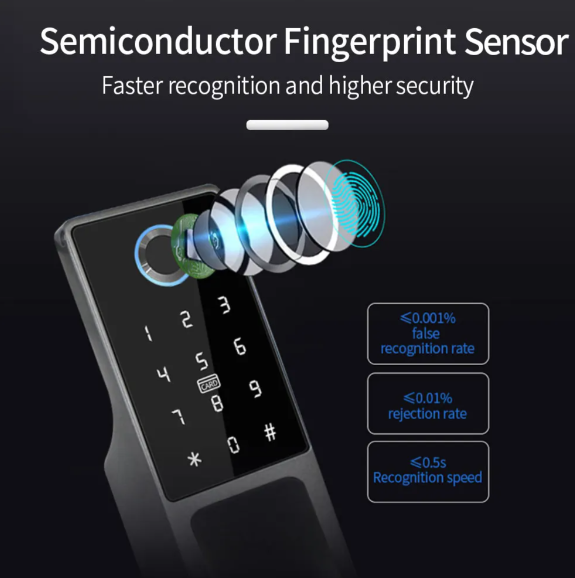 Powered by 4pcs alkaline dry batteries or 12V supply, it supports 150+ passwords, 200 IC cards, and 100 fingerprints with an ultra-low false acceptance rate of <0.001%. With Bluetooth 4.1 BLE and Tuya Smart App compatibility, you can control your lock anytime, anywhere.