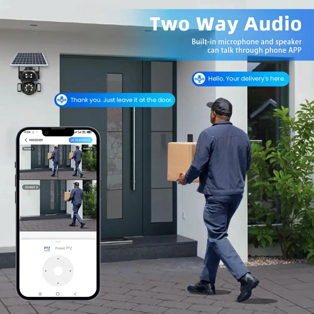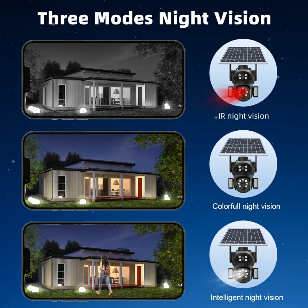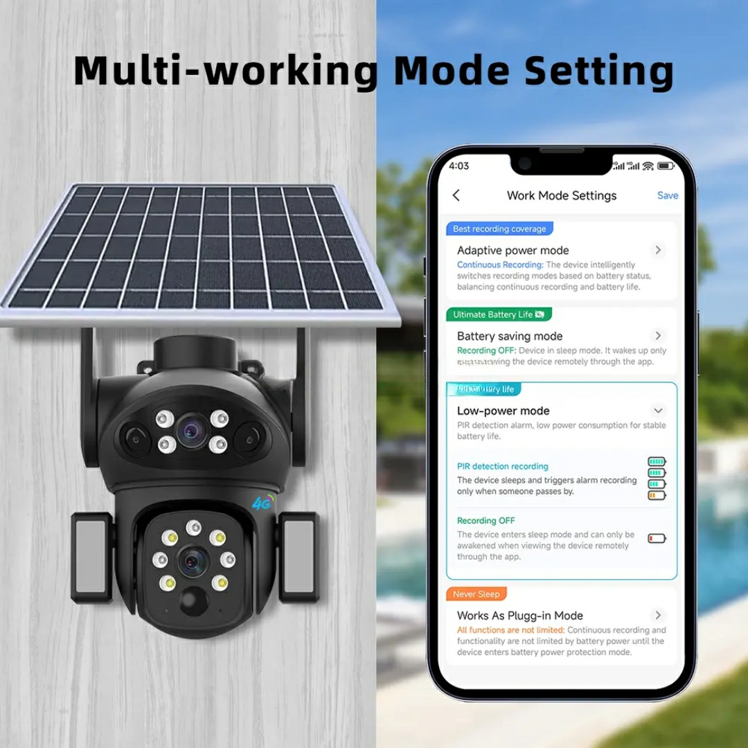 The Solar X7 Dual Lens IP65 WiFi+4G Camera is designed for modern living — easy to install, app-controlled, and equipped wmode, and flexible storage options — all in one sleek device that fits seamlessly into your smart home setup.ith 360° panoramic coverage for total indoor monitoring. Whether it’s for your living room, nursery, or office, it provides real-time alerts and crystal-clear video through the V380 pro Life App.